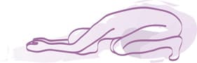 Kneel down with your buttocks resting on your heels and your toes pointing forward. With your palms together, extend your arms up vertically next to your ears. Slowly bring your arms and head down as one, first bending your neck, then the whole upper body, until your fingers hit the floor, keeping your buttocks as close to your heels as possible. Now stretch out with your forehead and nose resting on the floor. Breathe out as you go down, and stay there with your breath held out for 8 seconds. Then rise up breathing in. Practice eight times.